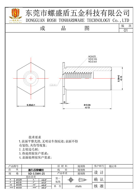 SO-3.5M4-25 壓鉚螺母柱
