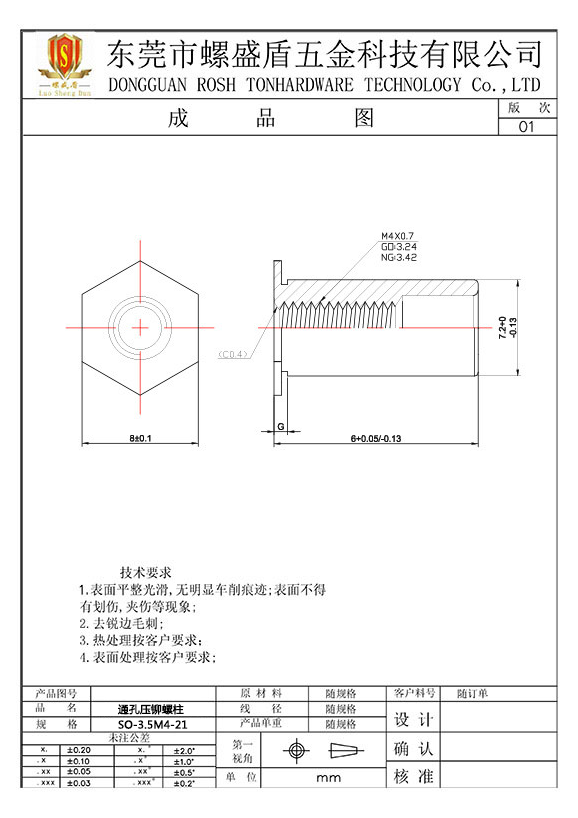 SO-3.5M4-21 壓鉚螺母柱