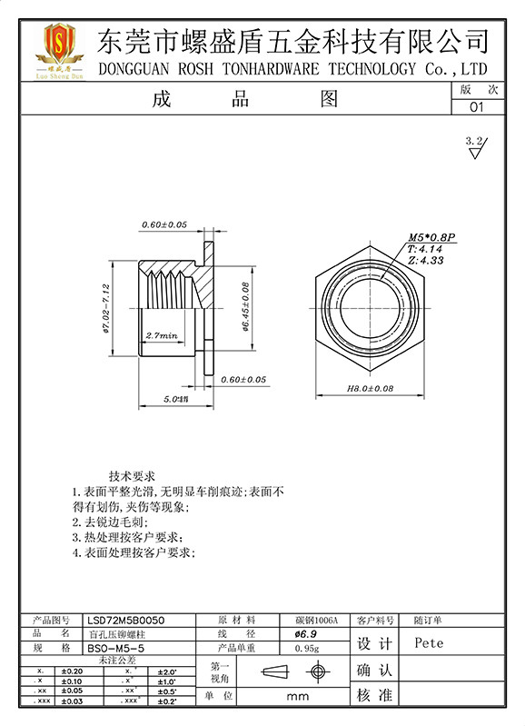 BSO-M5-5 壓鉚螺母柱