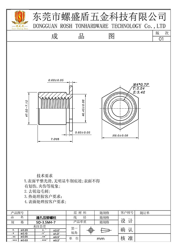SO-3.5M4-7 壓鉚螺母柱