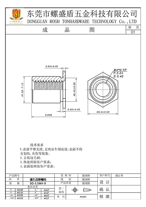 SO-3.5M4-9 壓鉚螺母柱