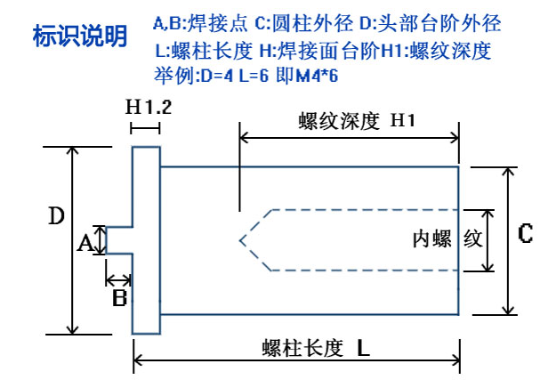 使用方式是將焊接螺柱一端與被連接表面接觸,螺柱焊機(jī)通電引弧,待接觸面熔化后,給螺柱一定壓力完成焊接的方法。另一端(螺紋端)穿過(guò)帶通孔的被連接件,然后套上墊圈,擰上螺母,使兩個(gè)被連接件連接成為一件整體。