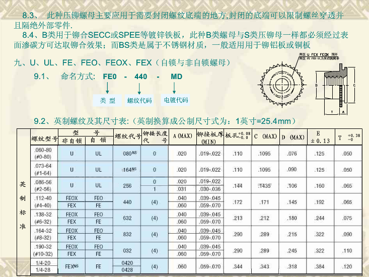 發(fā)布人:admin 發(fā)布時(shí)間:2017/11/15 10:19:15 次瀏覽在鈑金或部件中,除一般零件外,還廣泛使用PEM標(biāo)準(zhǔn)件壓鉚螺母柱 壓鉚螺母 壓鉚螺絲等零配件,這類零件的結(jié)構(gòu)和尺寸均已標(biāo)準(zhǔn)化,稱為標(biāo)準(zhǔn)件。還經(jīng)常使用齒輪、彈簧等零件,這類零件的部分結(jié)構(gòu)和參數(shù)也已標(biāo)準(zhǔn)化,稱為常用件。今天小螺就帶大家一睹PEM標(biāo)準(zhǔn)件技術(shù)介紹,請(qǐng)看下圖: