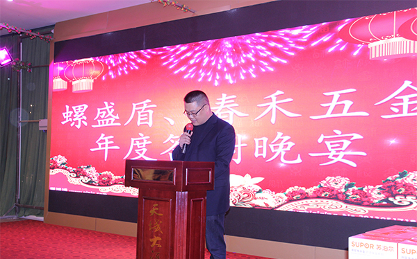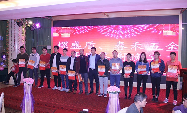 晚上7點(diǎn),年會正式拉開帷幕,首先由螺盛盾五金科技有限公司齊秀永總經(jīng)理發(fā)表致辭,他說道,過去的2017年,在全體員工的共同努力下,公司各方面工作取得了滿意的成效。在新的一年里,要以市場為導(dǎo)向、以合理的管理為紐帶、提高公司知名度、集中打造螺盛盾品牌形象。面對新的挑戰(zhàn),螺盛盾要上下團(tuán)結(jié)一心,迎接挑戰(zhàn);全體員工要蓄勢待發(fā),開創(chuàng)新局面!