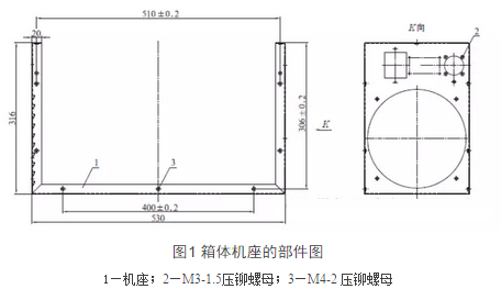 常見鈑金件的電源機(jī)箱,品種有數(shù)十種之多,客戶下訂單一般都有五六種,每種訂單約為20~30套,下面東莞螺盛盾小螺以某電源機(jī)箱為例,對其生產(chǎn)的各工藝流程展開分析。箱體機(jī)座使用2mm厚的冷軋低碳鋼板,需進(jìn)行4次90°折彎如圖1所示,它的加工精度主要是由孔間距510±0.2mm和306±0.2mm這兩個(gè)尺寸決定的,如果其超出允許偏差,會(huì)給裝配工作帶來很多困難,甚至導(dǎo)致與外殼件的裝配錯(cuò)位。因此,達(dá)到加工精度的關(guān)鍵是圖紙展開時(shí)使用的系數(shù)和折彎時(shí)使用的模具匹配。在箱體機(jī)座折彎時(shí)采用空洞折彎模式,折彎下模使用V10,經(jīng)計(jì)算得出機(jī)座的展開長度L為1188.88mm,考慮到數(shù)控機(jī)床的加工精度,L值取整為1189mm。