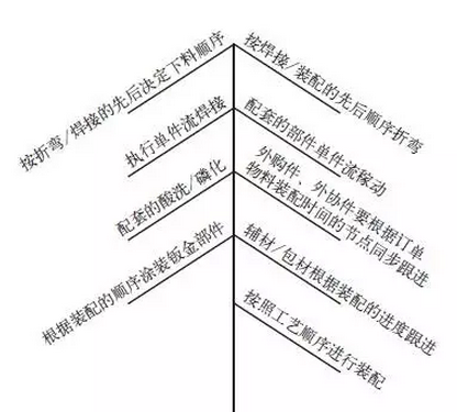 我們需要根據(jù)電源機(jī)箱的品種下發(fā)相應(yīng)的圖紙、工藝明細(xì)表及物料清單BOM、工序流程卡,而產(chǎn)品各個(gè)部件的加工周期是不同的,這就需要工藝按裝配先后順序編制BOM,把生產(chǎn)周期最長的部件放在最前邊,引起各部門的注意,依次類推。根據(jù)電源機(jī)箱各部件所需時(shí)間及流程周期的不同,按裝配時(shí)間來安排生產(chǎn),如圖3所示。