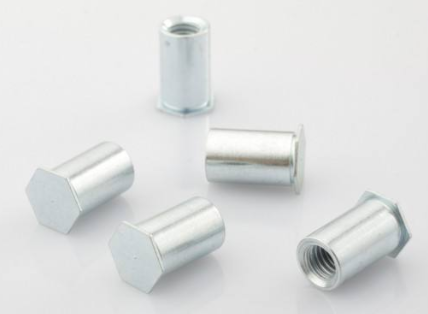 漲鉚件的部分材料在外力作用下發(fā)生塑性變形與基體材料形成緊配合,從而實(shí)現(xiàn)兩個(gè)零件的可靠連接。漲鉚工藝比較簡(jiǎn)單,連接強(qiáng)度較低,通常用在對(duì)緊固件高度有限制且承受扭距不大的情況用使用。