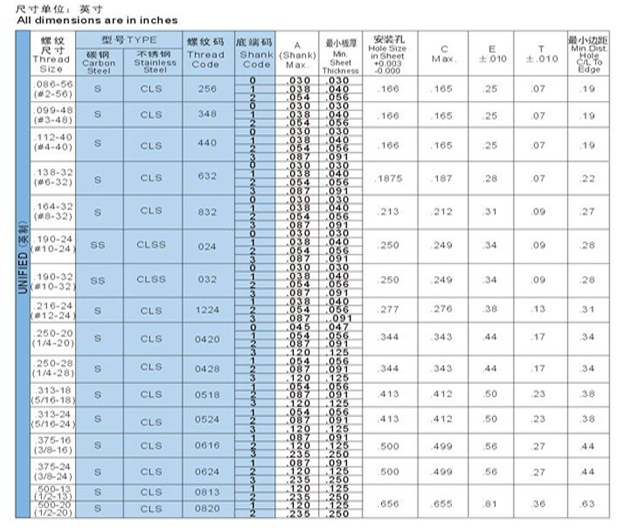 壓鉚螺母型號尺寸材質: