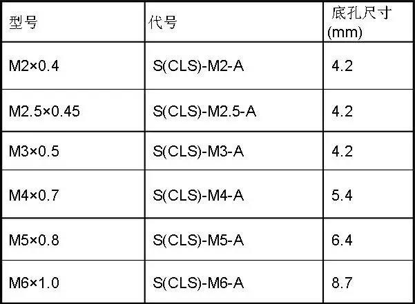 注:CLS為不銹鋼材料,S為普通A3鋼,A為螺母適用板厚材代號(hào)。