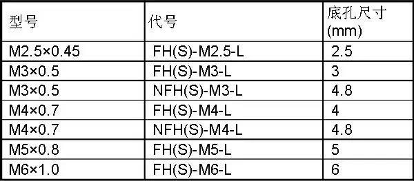 注:加S為不銹鋼材料,F(xiàn)H為圓頭,NFH為六角頭,L為螺釘總長(zhǎng)度。