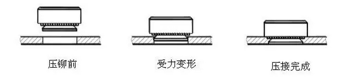 壓鉚就是指在鉚接的過(guò)程中,在外界壓力下,壓鉚件使基體材料發(fā)生塑性變形,而擠入鉚裝螺釘、螺母結(jié)構(gòu)中特設(shè)的預(yù)制槽內(nèi),從而實(shí)現(xiàn)兩個(gè)零件的可靠連接的方式。