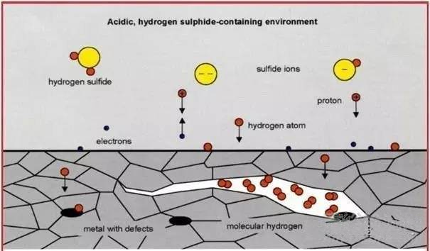 由于陰極保護(hù)的反作用或腐蝕的反作用,氫原子有可能進(jìn)入鋼或其他金屬的基體,并滯留在基體內(nèi),在低于屈服強(qiáng)度(合金的公稱強(qiáng)度)的應(yīng)力狀態(tài)下,它將可能導(dǎo)致延伸性或承載能力的降低或喪失、裂紋(通常是亞微觀的),直致在服役過(guò)程或儲(chǔ)存過(guò)程中發(fā)生突然斷裂,造成嚴(yán)重的脆性失效。
