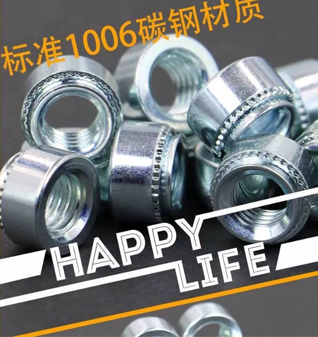 為了實現(xiàn)電動汽車身上零部件的安裝與緊固目的,東莞螺盛盾五金廠家采取的技術(shù)方案專業(yè)生產(chǎn)汽車行業(yè)專用壓鉚螺母,壓鉚螺母外形呈圓形,一端帶有壓花齒及導(dǎo)向槽。其原理是通過壓花齒壓入鈑金的預(yù)置孔位,一般而言預(yù)置孔的孔徑略小于壓鉚螺母的壓花齒,通過壓力使壓鉚螺母的花齒擠入板內(nèi)使預(yù)置孔的的周邊產(chǎn)生塑性變形,變形物被擠入導(dǎo)向槽,從而產(chǎn)生鎖緊的效果,從而壓鉚螺母與車身鋁板鉚壓連接更堅固緊密了。