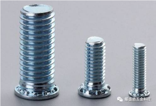 以上是圓頭壓鉚螺釘,另有六角頭壓鉚螺釘(NFH/NFHS),其特點(diǎn)是相較于圓頭而言,高扭力要求,其底孔直徑也不一樣,如M3和M4開(kāi)孔直徑4.8mm,M5底孔直徑5.0mm,M6底孔直徑6.0mm。還有各種頭部的壓鉚螺釘,以使用不同場(chǎng)合和要求。