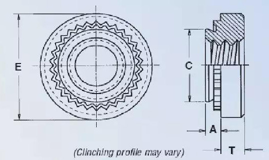 以上是圓形漲鉚螺母,還有六角形漲鉚螺母(NZ/NZS),其底孔設(shè)計(jì)同圓形漲鉚螺母。還有拉鉚螺母(GB/T17880),需要使用拉鉚槍作為工具,具體可查國(guó)標(biāo)。