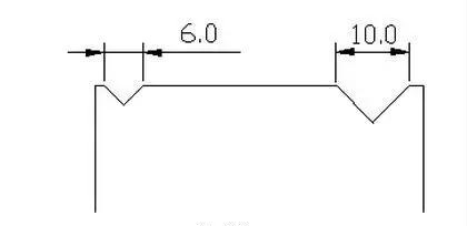 分別是6號(hào)和10號(hào)槽,但選用夠小的刀槽折彎時(shí),很容易出現(xiàn)壓痕,一般6號(hào)槽以下的壓痕都比較明顯,所以當(dāng)工件表面不處理時(shí),當(dāng)折彎邊比較小時(shí),有明顯的壓痕,一來(lái)影響外觀,二來(lái)容易生銹,所以在設(shè)計(jì)時(shí)要注意。