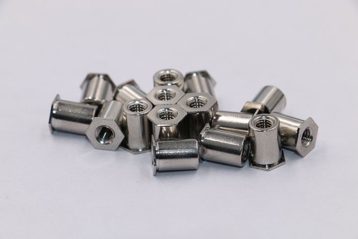 東莞市螺盛盾五金科技有限公司作為壓鉚緊固件領(lǐng)域的優(yōu)質(zhì)廠家,在壓鉚緊固件的生產(chǎn)工藝上具有非常多的經(jīng)驗(yàn)。螺盛盾五金通過(guò)壓力機(jī)將六角頭壓入薄板的預(yù)置孔內(nèi)(預(yù)置孔的孔徑一般略大于壓鉚螺柱的圓柱外徑)使孔的周邊產(chǎn)生塑性變形,變形部分被擠入壓鉚螺母柱的退刀槽內(nèi),使壓鉚螺母柱鉚緊于薄板上,從而在薄板上形成一下有效固定的內(nèi)螺紋。